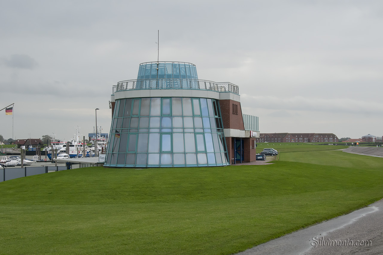 Also entsprechend gekleidet und mit meiner Kamera bin ich dann losgezogen und habe mal das "Haus des Gastes" aufgesucht. Es befindet sich direkt neben dem Strand und fällt einem gleich ins Auge mit seiner blauen Verglasung und dem Turm. Vom Deich aus geht ein Steg direkt auf den Turm, sodass man nur noch die Hälfte der Stufen erklimmen muß um einen freien Blick auf das UNESCO Weltnaturerbe Wattenmeer zu bekommen.