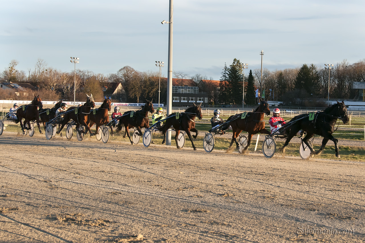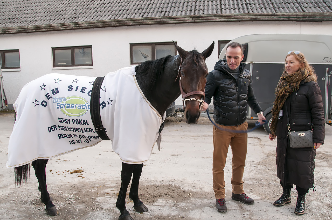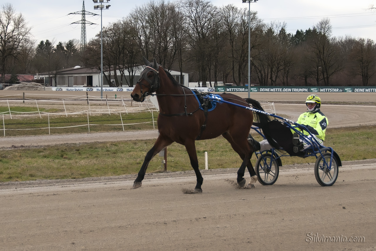 Völlig chillig geht es im Sulky dann mal mit einem PS statt vieler PS auf Fahrt. Aber nicht nur Spazierfahrten stehen auf dem Programm, sondern ab und an auch Rennen. Das alles in lockerer Atmosphäre mit liebevollen Pflegern und einem entspannten Trainer.